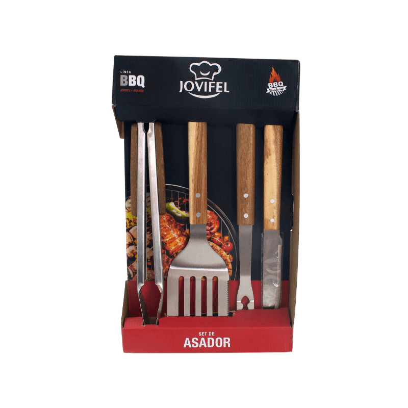 PINZA, ESPATULA, TENEDOR Y CUCHILLA PARRILLERA